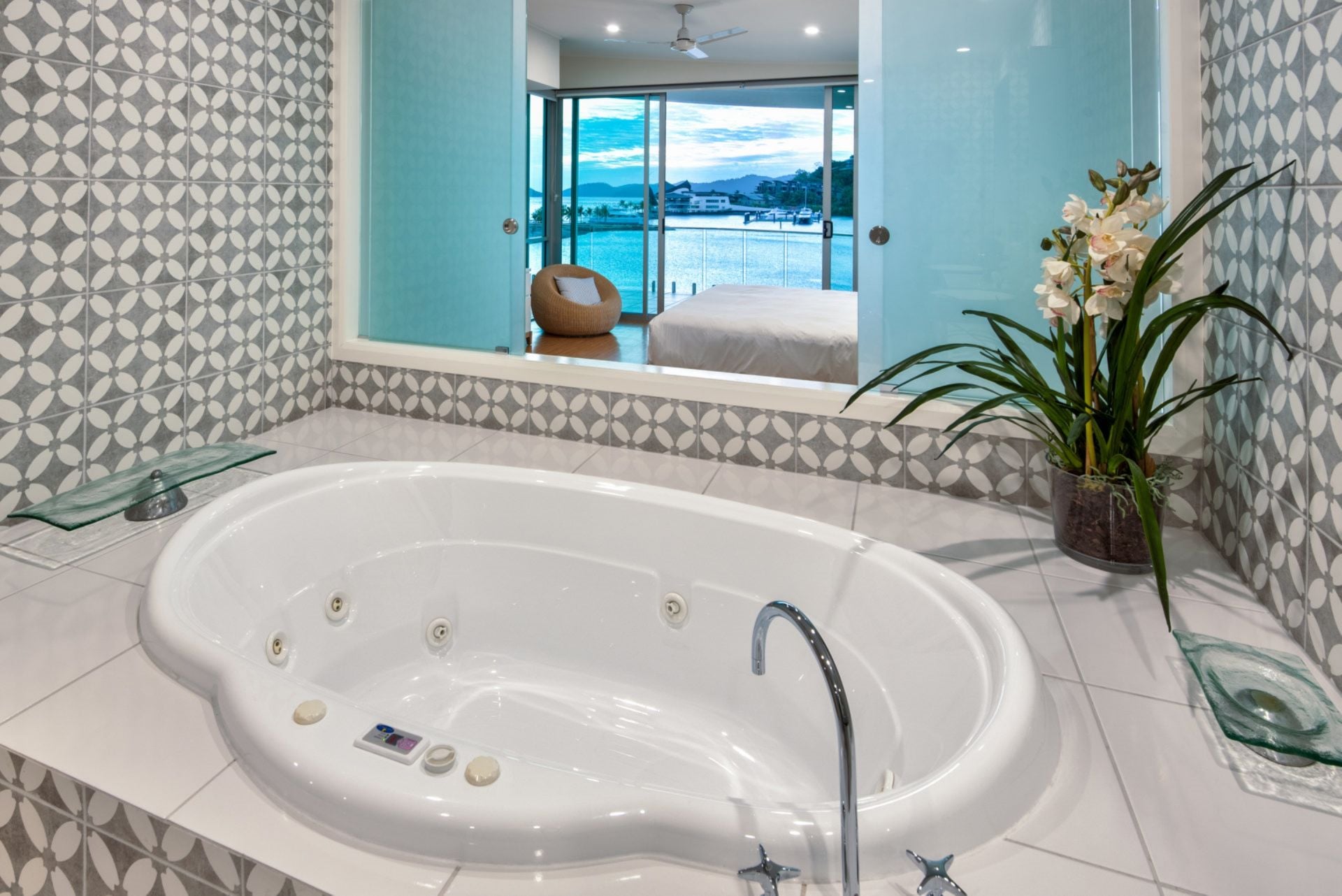 Pavilions Penthouse 25 spans the entire top level of the Western Pavilion, positioned on the edge of Hamilton Island Marina. It boasts breathtaking views across the marina and Yacht Club, stretching over Dent Passage to Dent Island and beyond, with perfect sunsets enjoyed year-round. Upon entering, you are immediately enthralled by the sheer scale and luxury on display.